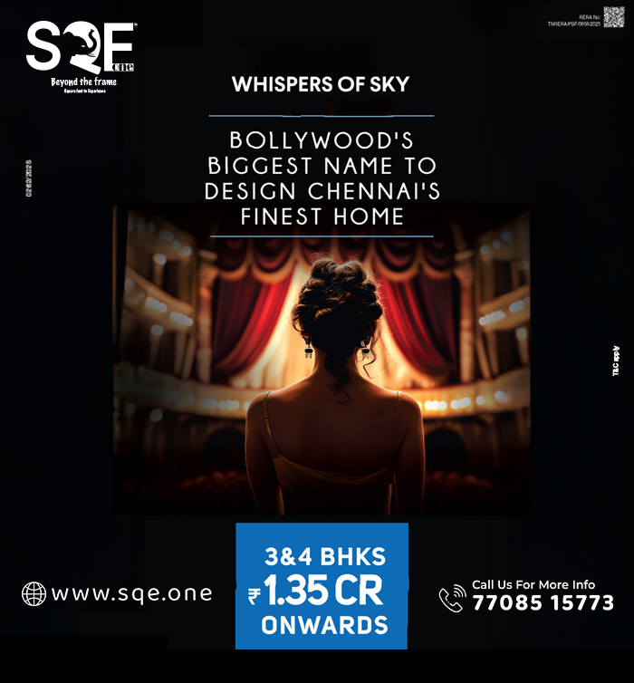 Whispers of Sky by Urbanrise is Chennai's first designer luxury residential project located at Sholinganallur, OMR. Offering spacious 3 & 4 BHK residences, this landmark development spans across 6.09 acres, Featuring grand balconies and enhanced privacy. With a 30,600 sq.ft. luxury clubhouse and exclusive rooftop experiences, Whispers of Sky truly redefines elite urban living. Situated in Chennai’s fastest-appreciating corridor, it is ideal for both end-use and investment.Welcome to the future of luxury living.